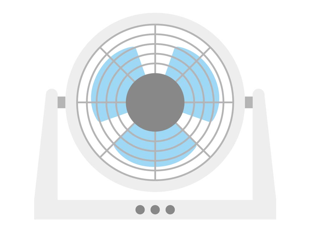 扇風機と比較すると羽が比較的小さく風を広範囲に遠くへ送り空気をかき