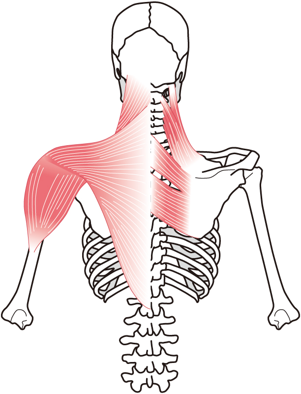 僧帽筋の重要性(トレーニング種目)【僧帽筋鍛えるメリット・効果】5枚目の画像のように、首・肩・背中に広がっている筋肉が「僧帽筋」です。僧帽筋は首・肩・背中の補助的な役割をしています。実は重要な筋肉なんです。首、腕、肩甲骨の動きと密接に関わっています。僧帽筋を鍛えるメリッ...